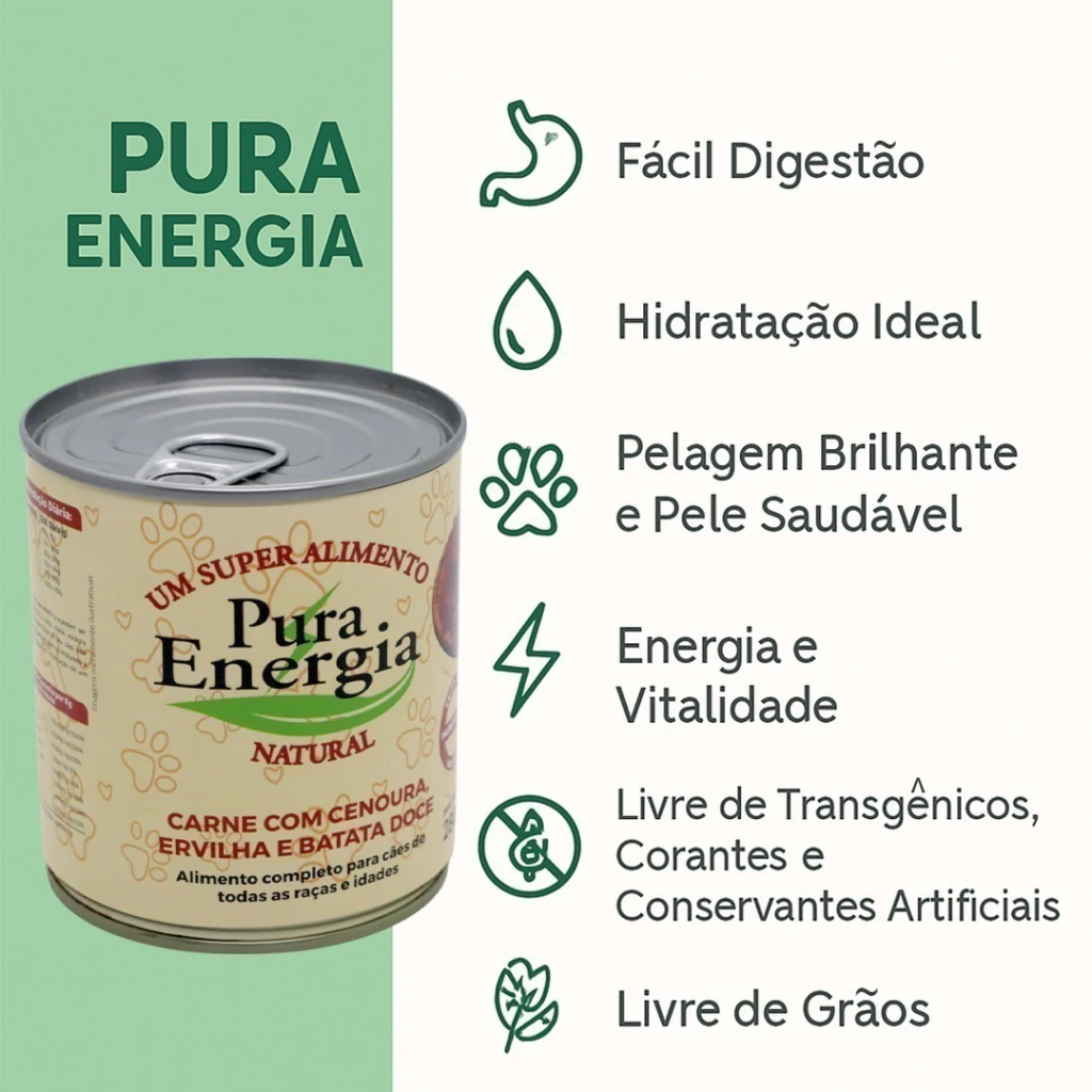 Ofereça ao seu melhor amigo uma nutrição de alta qualidade com a Ração Úmida Natural Pura Energia. Desenvolvida para cães de todas as raças e idades — desde filhotes até idosos —, nossa fórmula exclusiva proporciona uma refeição deliciosa, saudável e completa, promovendo vitalidade e bem-estar em cada porção.